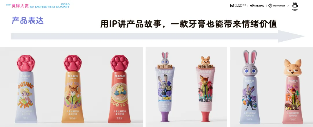 而在《疯狂动物城》的合作中,我们选择了另一条路径。这个 IP 更偏可爱、卡通,对孩子的吸引力更强,恰好对应我们“抗糖”系列产品的场景。围绕“吃糖—蛀牙—抗糖”的逻辑,我们引入了手办、萌粒等玩具化形式,把产品做成既能使用、又具备情绪价值的存在。这套联名产品在 9 月上线后,随着电影上映,很多用户把它当作摆件在社交平台分享,小红书二创阅读量超过 3000 万。我们发现,不同的 IP,需要完全不同的叙事方式。