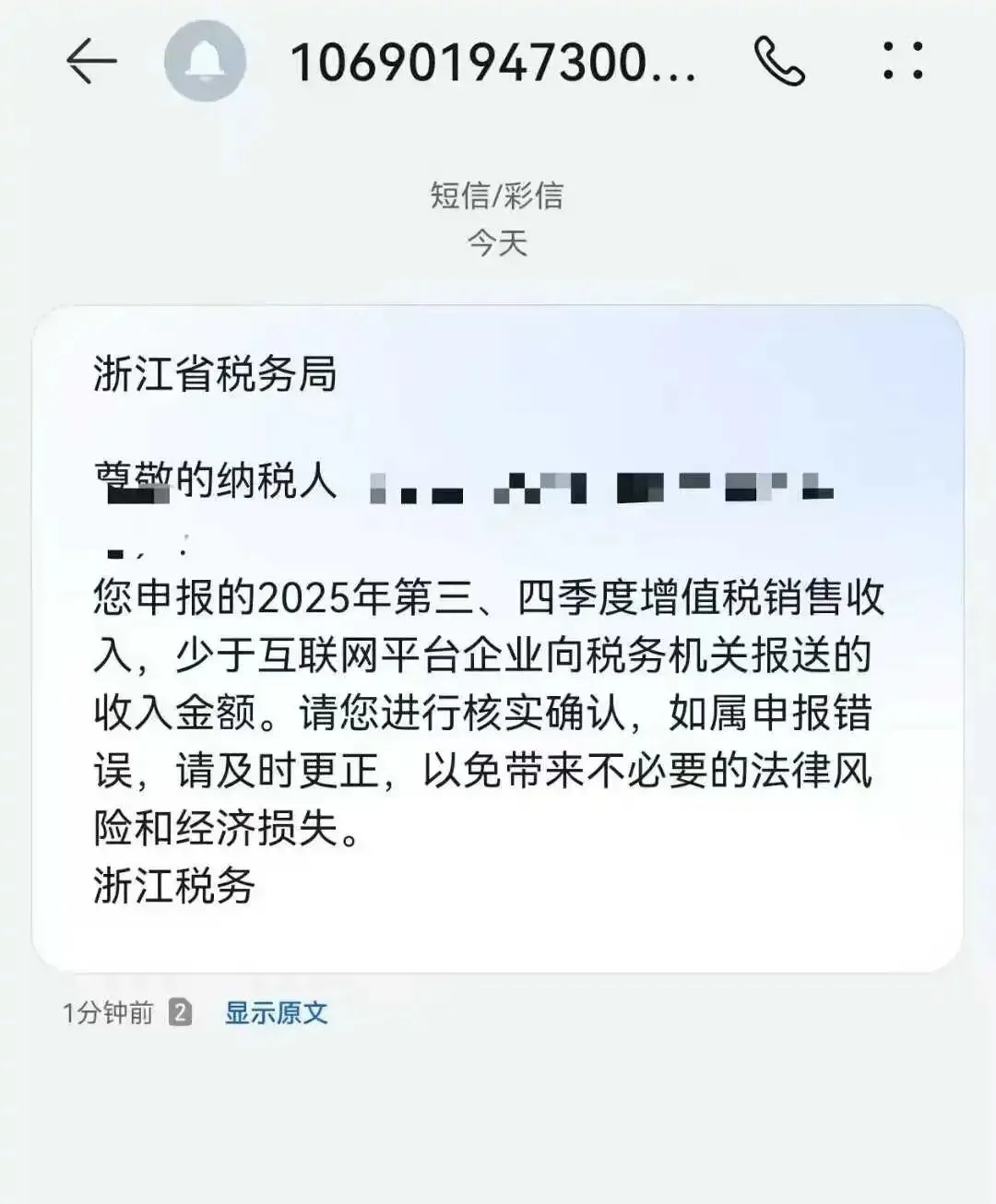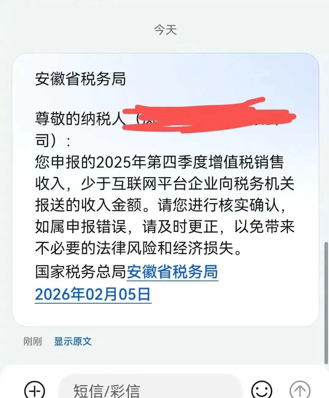 税务群内卖家提供的短信不少卖家这次的反应,反而比去年平静,也可以说是一次比一次平静了。不是不紧张,而是这种场景,正在变成一种可预期的节奏。2 月 5 日起,浙江、广东、江苏、安徽、江西、湖南等多地跨境电商卖家,几乎在同一时间收到了来自税务部门的风险提示短信,内容均指向同一问题——2025 年第四季度增值税申报销售收入,低于互联网平台向税务机关报送的收入金额。