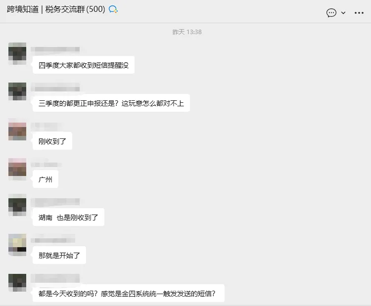 跨境知道税务群内卖家的讨论从亚马逊向中国税务机关报送的数据结构来看,平台在统计收入时,通常以订单发货日期作为归属周期,并将商品销售额、运费、礼品包装费、折扣、税费及附加费用等一并纳入收入计算范围。而佣金、FBA 费用及广告费用,则属于后端费用项目,并不会直接从“收入端”中扣除。这也意味着,卖家在后台看到的经营数据,更多是基于运营视角的结果呈现,而平台向税务端报送的,则是基于交易发生事实的统计数据。两者在统计时间、范围及逻辑上的差异,客观上容易形成申报偏差。02预警短信提前出现,申报窗口期被进一步压缩值得注意的是,此次第四季度税务预警短信的触发时间点,也引起了不少卖家的关注。从时间上看,第四季度平台涉税数据通常在 1 月底完成集中报送,而此次短信在 2 月初便已陆续发出,距离相关申报截止时间仅剩十余天。相比以往在申报结束后再进行核查的节奏,本轮预警明显更为前置。这种变化背后,反映的是税务系统对跨境电商数据处理效率的提升。从平台报送、系统比对到短信提示,已基本实现自动化运行。对于卖家而言,这段看似“缓冲”的时间,实际上已成为系统完成核算后的风险提示阶段。而近期深圳、广州等地陆续发布了针对跨境电商及外贸出口企业的“无票免税”政策优化措施,也为部分卖家提供了新的合规路径。不过,从政策适用范围来看,该类措施通常仅适用于特定出口模式(如 9610),且对企业所在地、申报平台及操作流程均有明确要求。跨境知道提醒,相关政策并非所有跨境卖家均可直接套用,贸然调整申报方式,反而可能在数据衔接上形成新的不一致。在当前监管环境下,盲目寻求“快速解决方案”,往往难以真正降低风险。写在最后从行业整体来看,跨境电商的税务环境已进入一个更加清晰、也更加透明的阶段。第四季度的这波税务预警,并非突然收紧,而是既有监管机制的自然延续。对卖家而言,与其反复纠结口径选择,不如尽早完成自查,理清平台数据与申报数据之间的差异,并在必要时主动与税务部门沟通说明。有了之前的经验,多数卖家应该也心里有数了。税务问题很少“一步到位”,但长期不处理,成本往往只会不断累积。在当前环境下,主动应对,已经成为比观望更稳妥的选择。